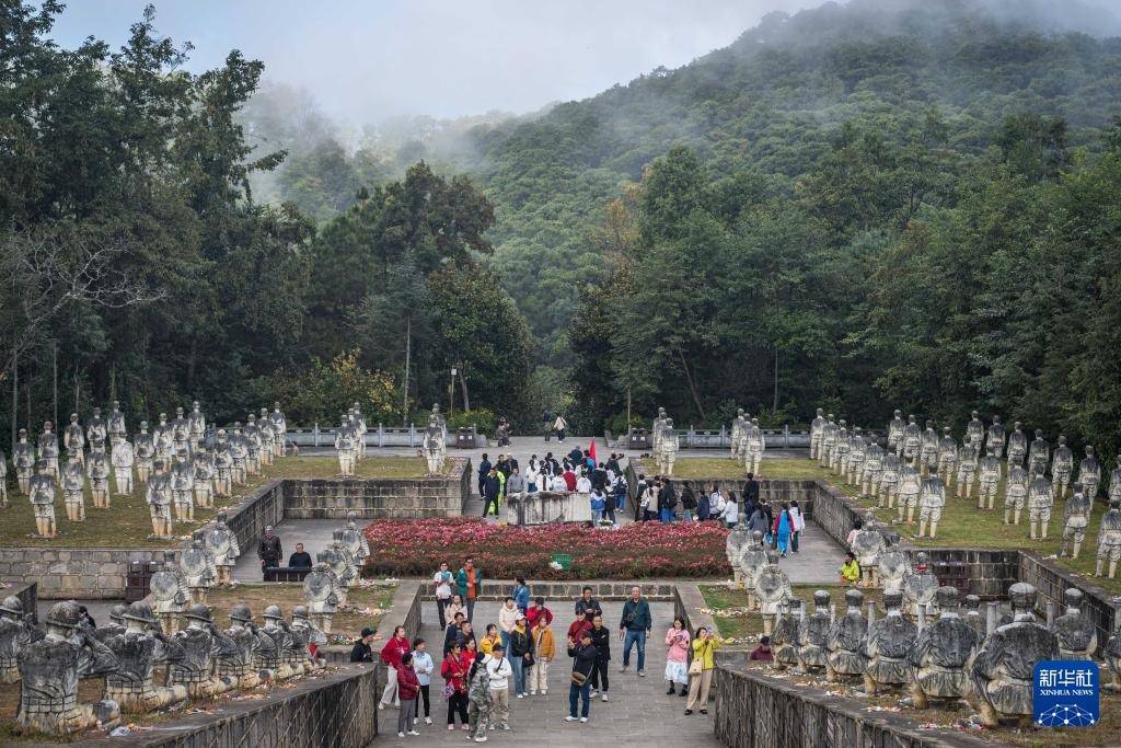 11月20日,游客在云南省保山市龙陵县松山战役旧址参观。